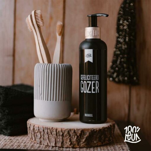 Jarig, geslaagd of iets anders te vieren? Dat verdient een felicitatie! Deze douchegel is een perfect mannencadeau om een stoere gozer mee te verrassen. Door de kruidige zachte geur kan het niet anders dan in de smaak vallen. Bij iedere douchebeurt zal er teruggedacht worden aan dit LEUKe cadeau! In handig pompje voor perfecte dosering.
